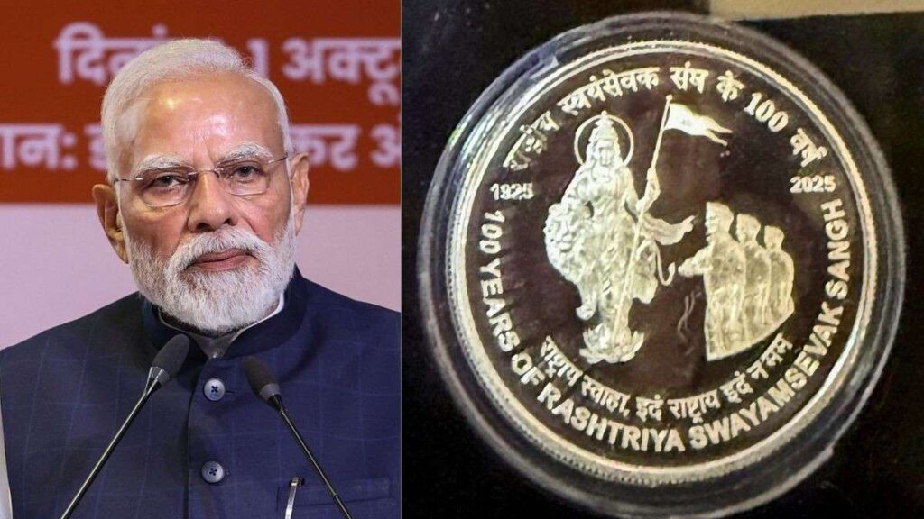Prime Minister Narendra Modi on Wednesday released a specially designed commemorative postage stamp and a silver coin to mark the centenary celebrations of the Rashtriya Swayamsevak Sangh (RSS), highlighting the organisation’s contribution to the nation. Addressing the gathering, the Prime Minister explained the significance of the commemorative coin. “In the Rs 100 coin, on one side is the National Emblem and on the other side, Bharat Mata’s Varada Mudra image along with that of a lion and Swayamsevak bowing down to her with all dedication. This is the first time in the history of Independent India that an image of Bharat Mata has been shown on our currency,” he said. The coin issued on the occasion is made of pure silver with a denomination of Rs 100. The reverse side carries the image of Bharat Mata with three Swayamsevaks saluting her, while the obverse side bears the Lion Capital of the Ashoka Pillar. The imagery reflects the traditional pose seen in RSS functions, where cadres bow in dedication before Bharat Mata.