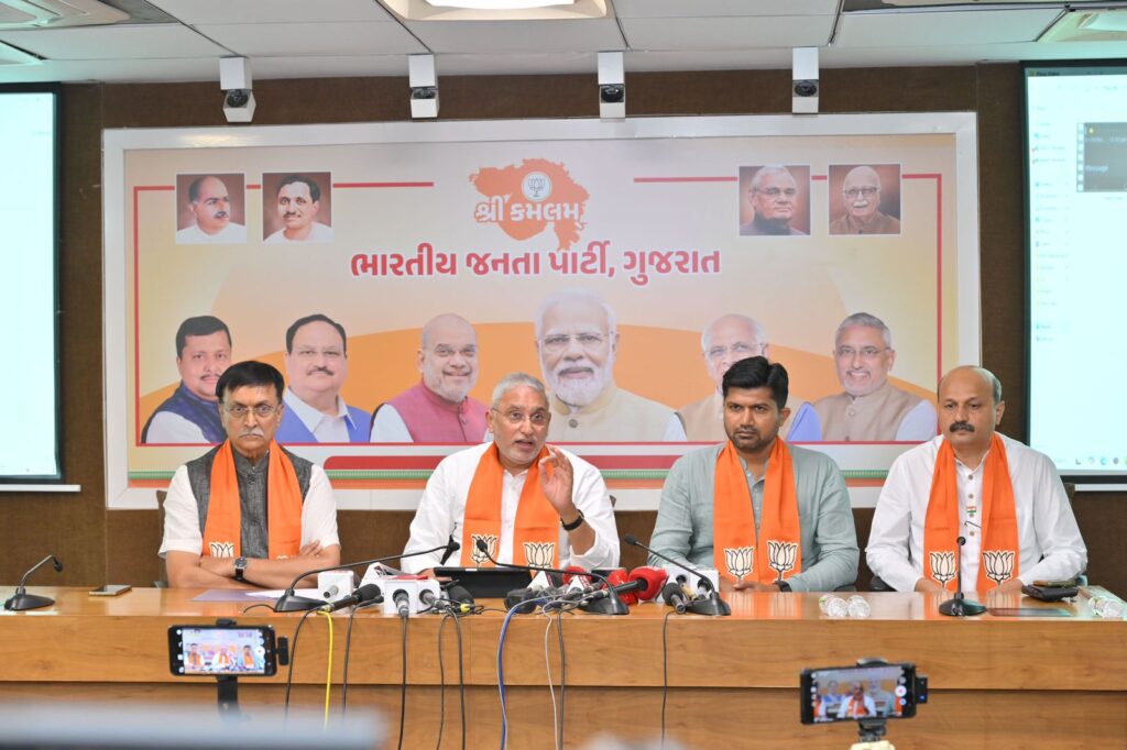 Gandhinagar: During a recent press conference, Gujarat BJP State President Jagdishbhai Vishwakarma launched a scathing attack on the Aam Aadmi Party (AAP) and the Trinamool Congress (TMC), accusing them of suppressing the media and local officials to hide government failures,. Vishwakarma characterized the media as the “fourth pillar of democracy” and a “mirror to society,” but claimed that the Arvind Kejriwal-led AAP is actively working to “crush” this mirror,. He highlighted several incidents in Punjab, including a raid on the Punjab Kesari newspaper office and the alleged physical assault of journalists by Punjab Police in Bathinda. Vishwakarma also cited the arrest of a female journalist from the Times Network in Ludhiana as an act of retaliation for reporting on the “Sheesh Mahal”—a controversial luxury residence built for the Delhi Chief Minister,. He further alleged that the AAP government uses police force to pressure media houses into not broadcasting BJP events live,. Additionally, Vishwakarma claimed that past incidents of ink or shoes being thrown at Arvind Kejriwal were “self-staged” by AAP workers to gain “cheap publicity”,.