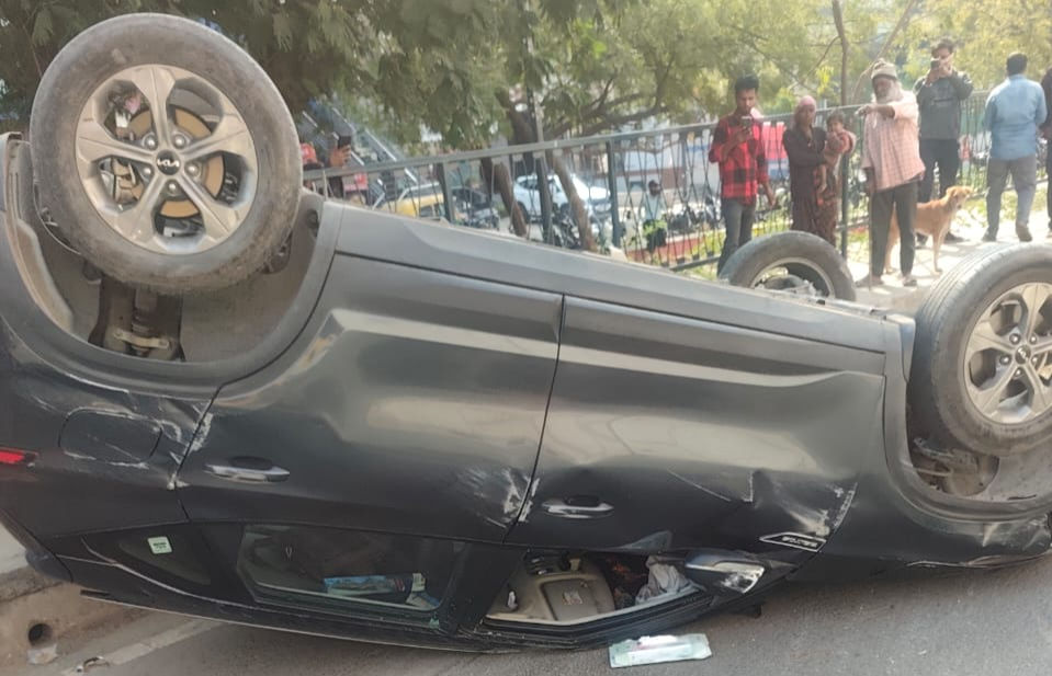 Eyewitnesses said the overturned vehicle caused panic among commuters, leading to traffic congestion for some time on the busy stretch. Police and traffic personnel rushed to the spot and cleared the vehicles, restoring the flow of traffic.