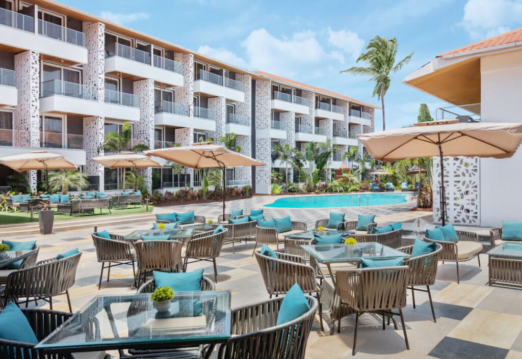 3.For the ultimate vacation vibe, Ronil Goa – a JdV by Hyatt hotel on Calangute-Baga road, where Indo-Portuguese charm meets effortless holiday joy. Guests are welcomed with arrival and departure shots at Patrao’s, stay in breezy rooms with private balcony, and kick off each day with a Farmhouse Breakfast and a DIY Bloody Mary Bar. Choose from a dinner at Ronil Bistro and unwind with a 15-minute poolside ritual for one adult. With two beautiful pools to dive into, plus daily happy hours, at The Hub. Guests also enjoy a complimentary mini-bar and 20% off food, drinks, laundry, and 60+ minute spa rituals, alongside 15% off transport.